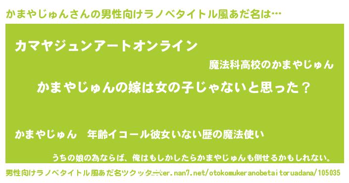 | 女子向けラノベタイトル風あだ名 | 『かまやじゅん様がみてる』 |