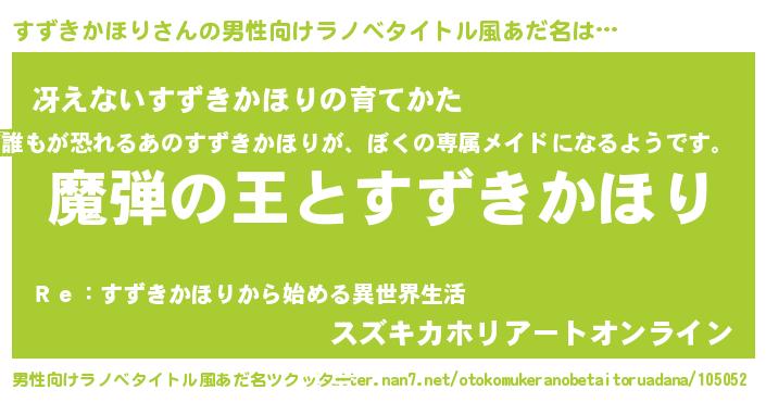 | 女子向けラノベタイトル風あだ名 | 『乙女ゲームの破滅フラグしかない悪役すずきかほりに転生してしまった…』 |