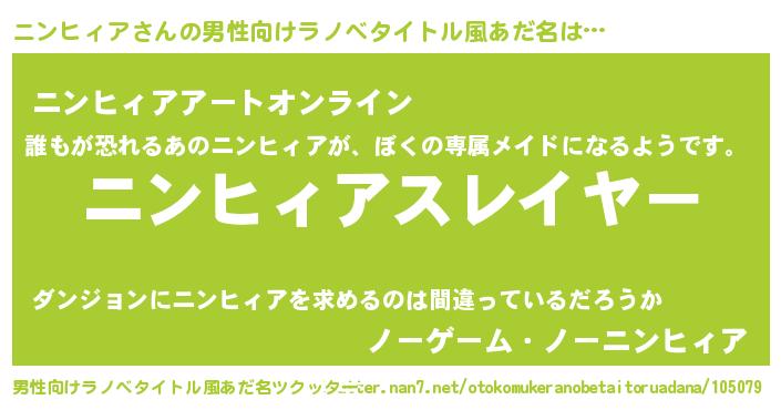 | ヒーロー風カッコイイあだ名 | 『スーパーニンヒィア』『ネオニンヒィア』 |