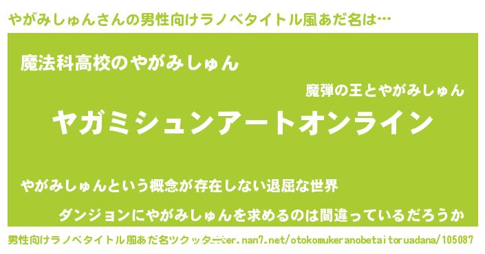 | 胡散臭い通販商品みたいなあだ名 | 『モテモテ間違いなし水晶球…その名も「やがみしゅん」』 |
