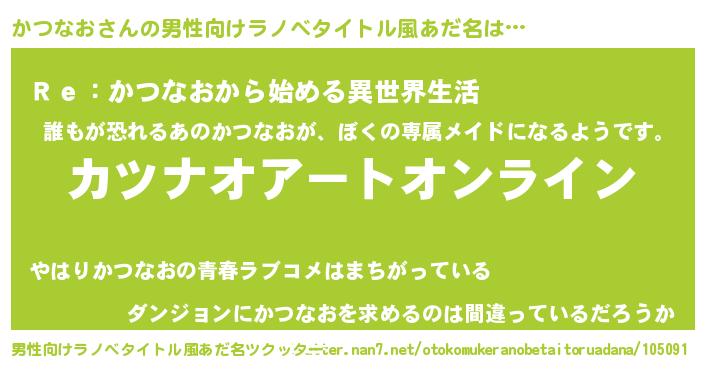 | 胡散臭い通販商品みたいなあだ名 | 『億万長者になれる水晶球…その名も「かつなお」』 |