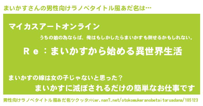| 女子向けラノベタイトル風あだ名 | 『まいかすストレイドッグス』 |