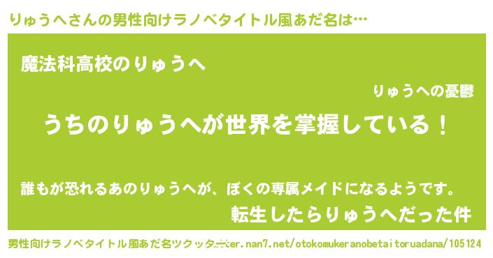 | ヒーロー風カッコイイあだ名 | 『最強戦士リュウヘ』『スーパーリュウヘ』 |