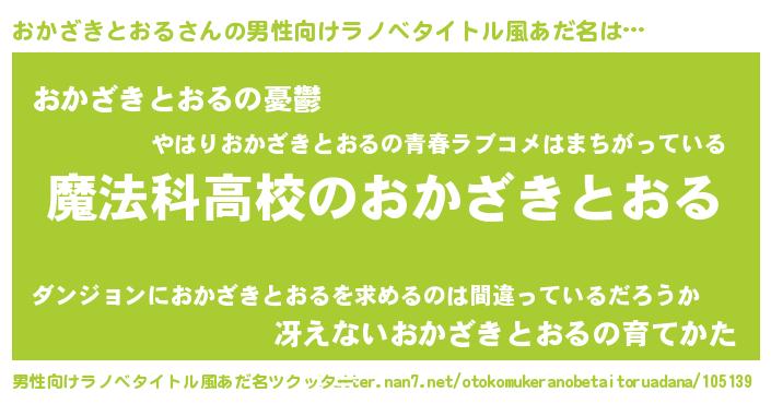 | 女子向けラノベタイトル風あだ名 | 『おかざきとおるなんてお断りですっ。』 |