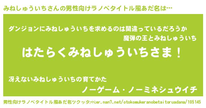 ヘコむあだ名 | 『みねっちょ』『みねしゅういち(震え声)』 |