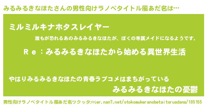| 女子向けラノベタイトル風あだ名 | 『みるみるきなほたストレイドッグス』 |