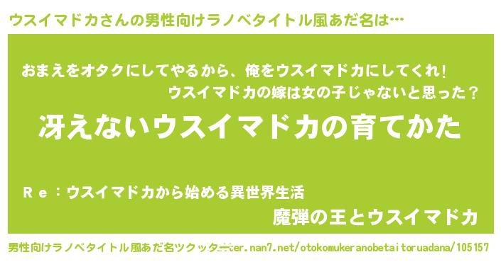 | 胡散臭い通販商品みたいなあだ名 | 『お金では代えられないマグネット磁石…その名も「ウスイマドカ」』 |