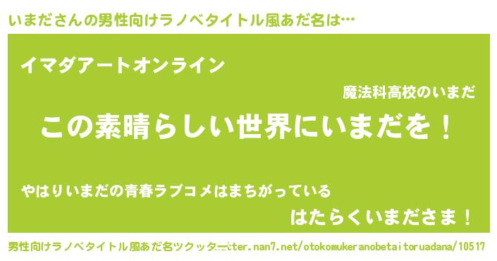 | 意味不明あだ名 | 『住所不定無職いまだ(84歳)』『自称いまだ』 |