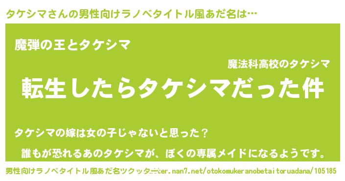 | 女子向けラノベタイトル風あだ名 | 『タケシマの玉の輿計画!』 |