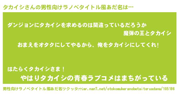 | 女子向けラノベタイトル風あだ名 | 『タカイシ夫妻のなれそめ』 |