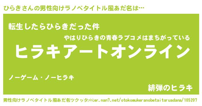 | 女子向けラノベタイトル風あだ名 | 『ひらき姫と円卓の騎士』『ひらき恋絵巻』 |