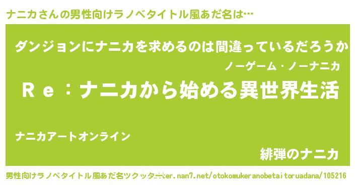 | 女子向けラノベタイトル風あだ名 | 『ナニカストレイドッグス』 |