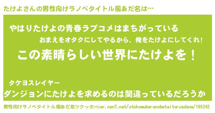 | 意味不明あだ名 | 『住所不定無職たけよ(89歳)』 |