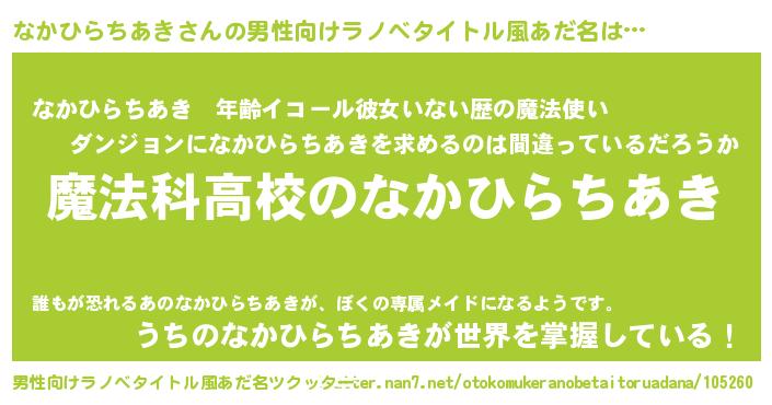 | 女子向けラノベタイトル風あだ名 | 『なかひらちあきなんてお断りですっ。』 |