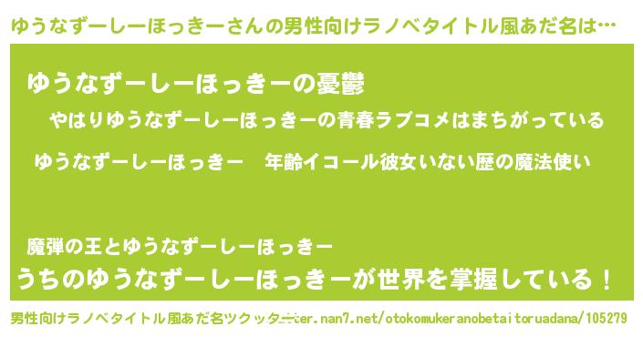 | 胡散臭い通販商品みたいなあだ名 | 『億万長者になれるブレスレット…その名も「ゆうなずーしーほっきー」』 |