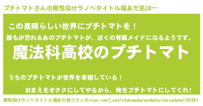 | ヒーロー風カッコイイあだ名 | 『超時空戦士プチトマト』『仮面プチダー』 |