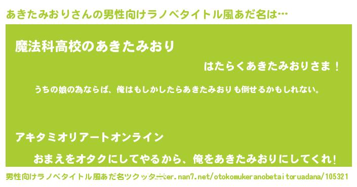 あきたみおりさんの男性向けラノベタイトル風あだ名をツクッター!