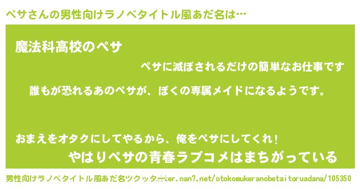 | 意味不明あだ名 | 『永久保存ペサ』『自称ペサ』 |