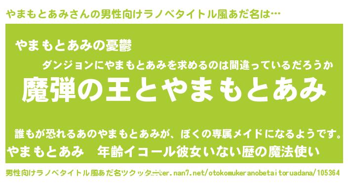 | 意味不明あだ名 | 『住所不定無職やまもとあみ(12歳)』 |
