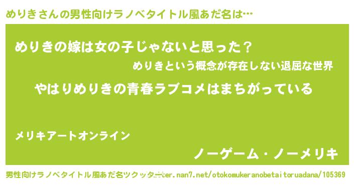 | 意味不明あだ名 | 『めりきフォーエバー』『永久保存めりき』 |