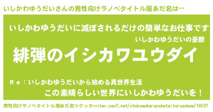 | 意味不明あだ名 | 『住所不定無職いしかわゆうだい(3歳)』 |
