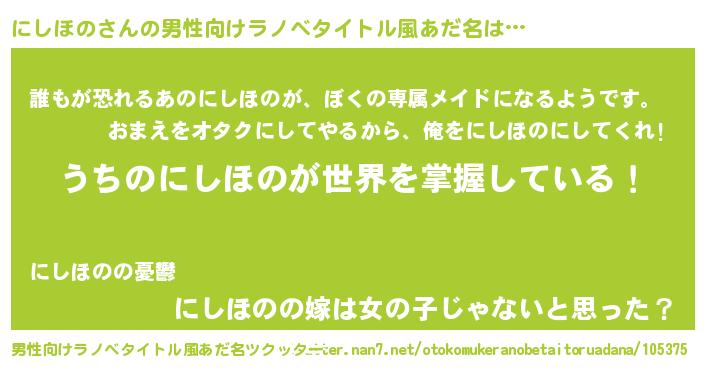 | 意味不明あだ名 | 『永久保存にしほの』『ペロリンにしほの』 |