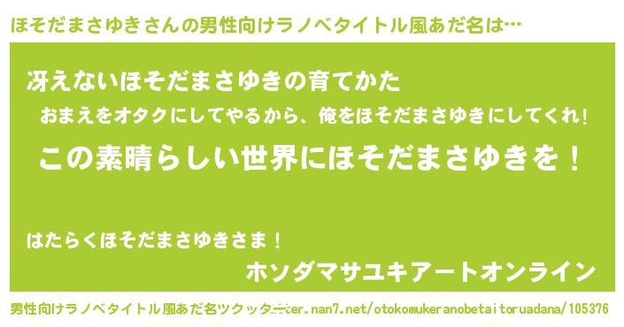 | 女子向けラノベタイトル風あだ名 | 『乙女ゲームの破滅フラグしかない悪役ほそだまさゆきに転生してしまった…』 |