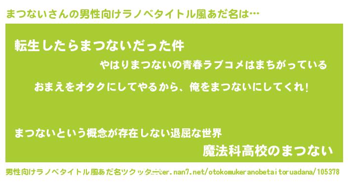 | 女子向けラノベタイトル風あだ名 | 『まつない夫妻のなれそめ』 |