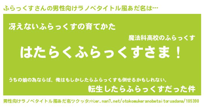| 胡散臭い通販商品みたいなあだ名 | 『ガンによく効く高麗人参…その名も「ふらっくす」』 |