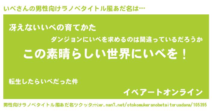 | 胡散臭い通販商品みたいなあだ名 | 『あなたにだけ特別に提供する100年もののヴィンテージワイン…その名も「いべ」』 |