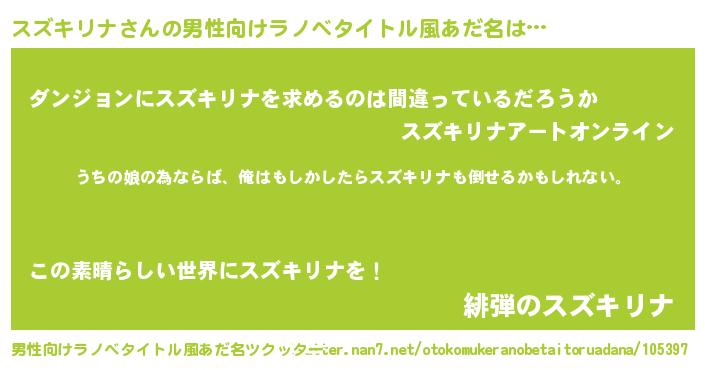 | 女子向けラノベタイトル風あだ名 | 『スズキリナ伯爵の花嫁』 |