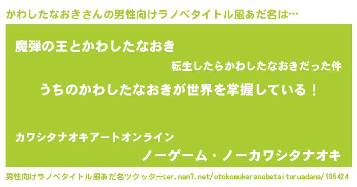 | 意味不明あだ名 | 『住所不定無職かわしたなおき(59歳)』 |
