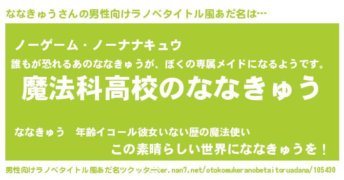 | 女子向けラノベタイトル風あだ名 | 『ななきゅうアンティーク』 |