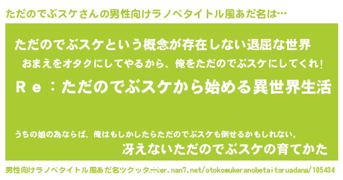 | 女子向けラノベタイトル風あだ名 | 『ただのでぶスケストレイドッグス』 |