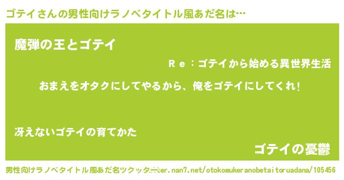 | 女子向けラノベタイトル風あだ名 | 『ゴテイ夫妻のなれそめ』『闇のゴテイ』 |