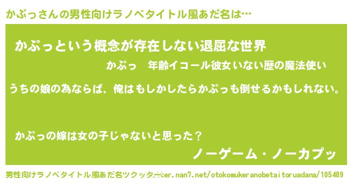 | ファンタジー風あだ名 | 『エターナルカプッー』『カプディッシュ』 |