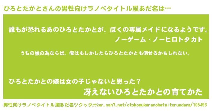 | ファンタジー風あだ名 | 『エターナルヒロトタカトー』 |