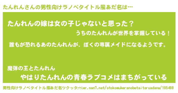 | ヒーロー風カッコイイあだ名 | 『ネオタンレン』『炎刃騎士タン』 |