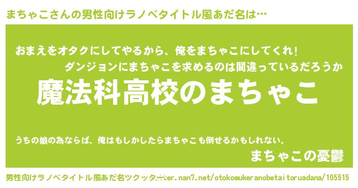 | 女子向けラノベタイトル風あだ名 | 『まちゃこアンティーク』 |
