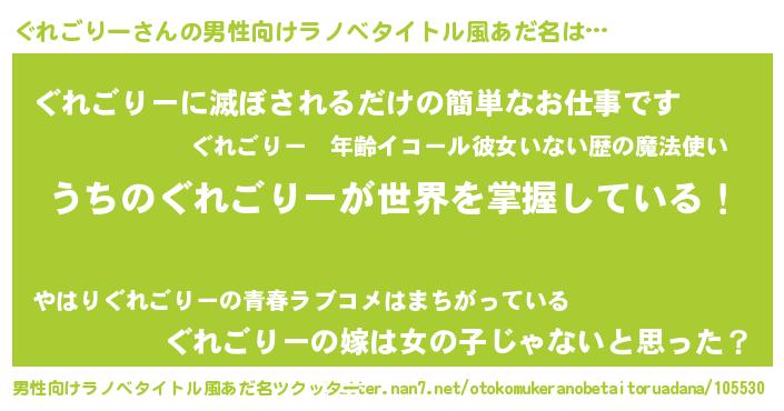 | ヒーロー風カッコイイあだ名 | 『炎刃騎士グレ』『ネオグレゴリー』 |