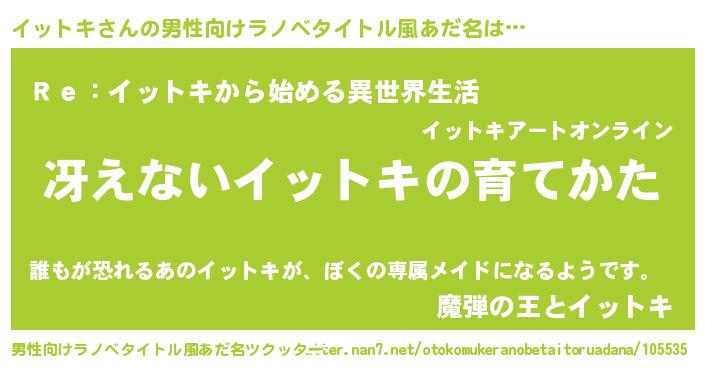| ヒーロー風カッコイイあだ名 | 『サイバー戦士イットキ』『仮面イッダー』 |