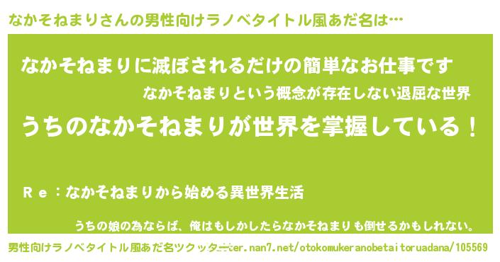 | 意味不明あだ名 | 『なかそねまりフォーエバー』 |