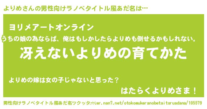 | 胡散臭い通販商品みたいなあだ名 | 『モテモテ間違いなしブレスレット…その名も「よりめ」』 |