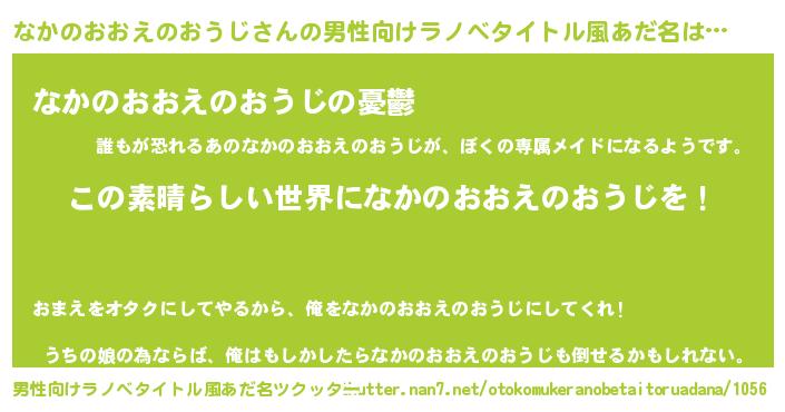 | 女子向けラノベタイトル風あだ名 | 『悪役なかのおおえのおうじに転生したようですが、知った事ではありません』 |