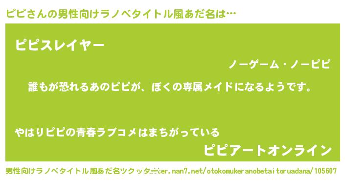 | ヘコむあだ名 | 『ピピ(苦笑)』『ピピにー』『ピピお』 |