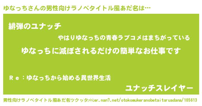 | ヒーロー風カッコイイあだ名 | 『ウルトラゆなっちマン』『仮面ユナダー』 |