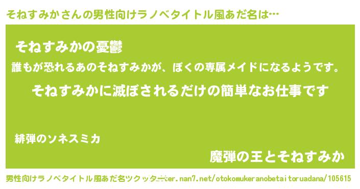 | 胡散臭い通販商品みたいなあだ名 | 『億万長者になれる霊験あらたかなお札…その名も「そねすみか」』 |