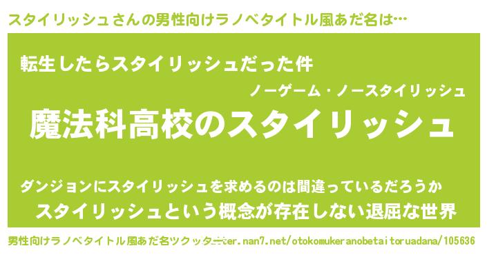 | 胡散臭い通販商品みたいなあだ名 | 『ガンによく効く高麗人参…その名も「スタイリッシュ」』 |
