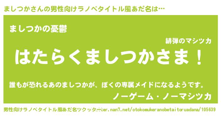 | 胡散臭い通販商品みたいなあだ名 | 『モテモテ間違いなし霊験あらたかなお札…その名も「ましつか」』 |