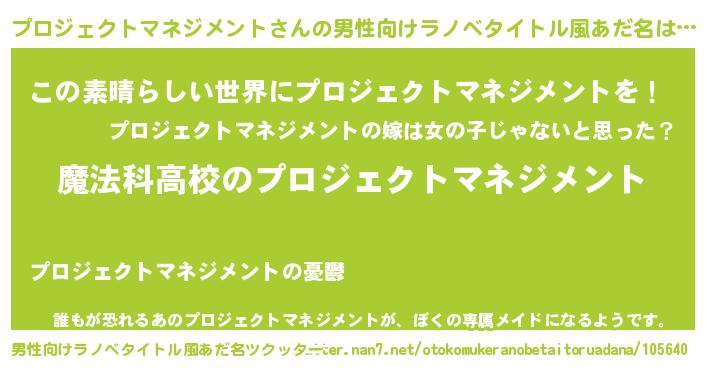 | 女子向けラノベタイトル風あだ名 | 『プロジェクトマネジメントなんてお断りですっ。』 |